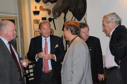 Det ble tid til en hyggelig prat med kveldens foredragsholderr. Fra venstre Petter Nørholm, Kim Birkedal Hartmann, Gorm Lund, Per Jæger og en av kveldens gjester Torkjell Berulfsen.